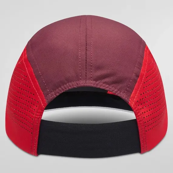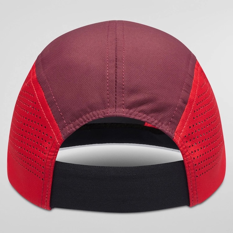 Ελαφρύ καπέλο τρεξίματος πέντε πάνελ κατασκευασμένο από ανακυκλωμένο ύφασμα. Απορροφώντας την υγρασία και άνετο, με αντανακλαστικές λεπτομέρειες για ορατότητα σε χαμηλό φωτισμό.