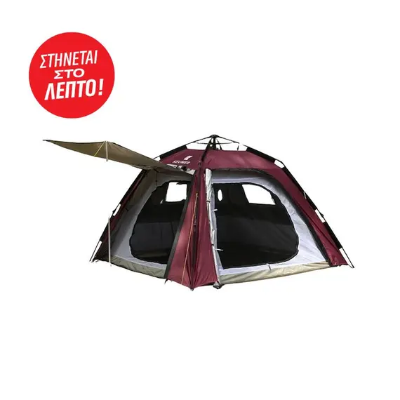 Αυτόματη σκηνή KEUMER AUTO 3P 3 ατόμων με ενισχυμένο ύφασμα και ενσωματωμένο σκελετό, μεγάλες εισόδους με σίτες στις δύο συνεχόμενες πλευρές και παράθυρα εξαερισμού με σίτες στις υπόλοιπες δυο. Πρακτική και εύκολη στο στήσιμο και στη μεταφορά της.