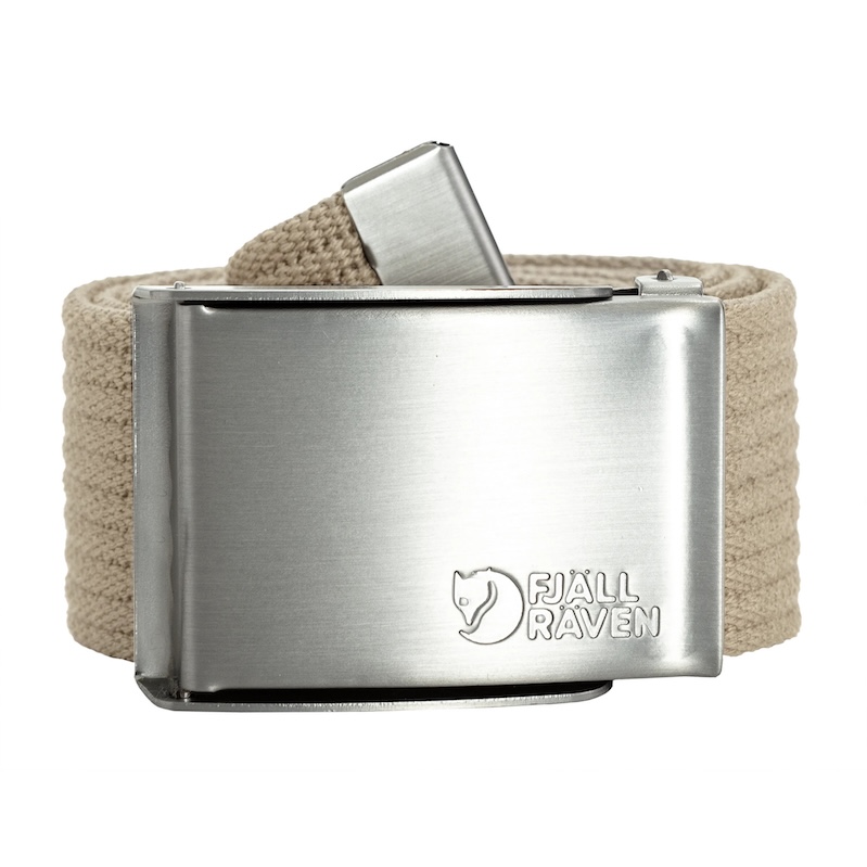 Canvas belt. Adjustable length and metal 'military' belt buckle.