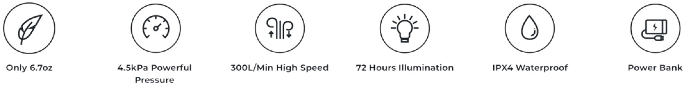 - Υψηλή: Ροή αέρα 300 L/min - Πίεση 4.5 kPa - Διάρκεια μπαταρίας έως και 45 min