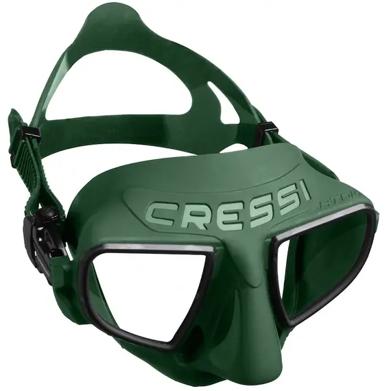 Atom is a radical mask, with incredible low internal volume, thought and built for free-diving. It is a frameless mask. Construction material has been reduced to the minimum. Inside the silicon facial a stiff core is co-stamped with the two lenses, giving just the right rigidity to the mask. This semi-rigid core substitutes the usual external plastic frame and allowed us to reduce the internal volume of the mask in an unseen way until today. Another feature of atom is the ergonomic shape of the nose. Two small cavities, carved by the nostrils, facilitate the action of compensation. This makes the mask extremely stable during the dive. Atom will not move when you compensate pushing atom is the perfect mask for the expert free-diver and spear-fisher, who wants the maximum performance from its gear