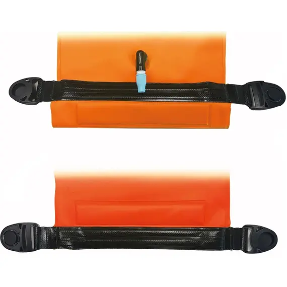 Very hydrodynamic swim buoy, realized with quality materials and components. Tapered design that improves the hydrodynamics especially in case of blurred sea and wind. Red orange fluorine fabric for great visibility. Brilliant finish for an ideal slide. Internal compartment watertight with water tightness system specially effective with rigid soul. Inflator with safety closing screwing