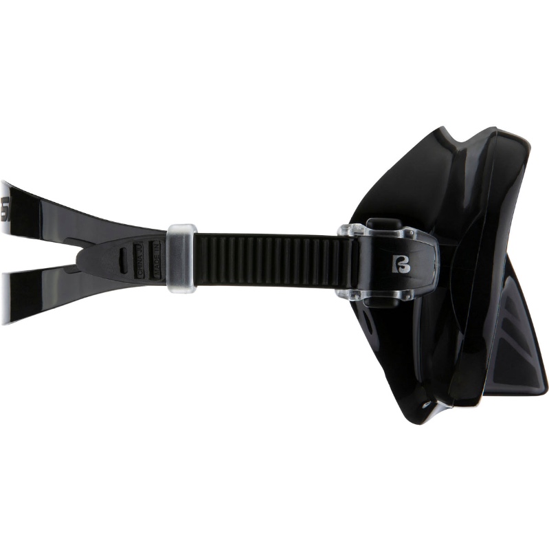 - Οι περιστρεφόμενες μικρομετρικές αγκράφες του ιμάντα της μάσκας περιστρέφονται για να αποτρέψουν την καταπόνηση στο σημείο σύνδεσης, με ρύθμιση με το ένα χέρι και κουμπί γρήγορης απελευθέρωσης.